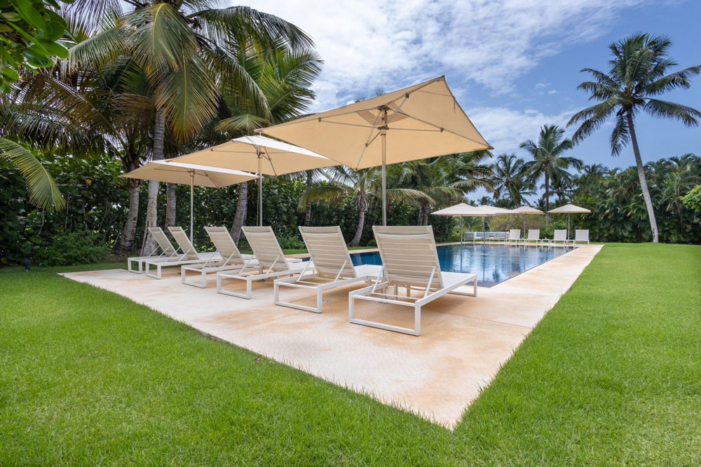 Spectacular newly remodeled 6 bedroom villa is one of the most contemporary tropical designs and décor in Casa de Campo. Spectacular ocean and golf views this villa has a 60 foot pool with built-in umbrellas and a heated Jacuzzi that seats 12 plus 10 lounge chairs. The villa has every modern convenience you will need.. Outdoor dining for 8 and a comfortable seating area under roof. A complete surround sound system for music and many smart home features.Indoor dining table for 14 and another for 6 people. Spectacular living room, indoor water features. Night time lighting is fabulous. A build in pizza oven is just one unique feature of this villa. 2 modern professional kitchens allow the cook and waiter to provide you a special experience.
